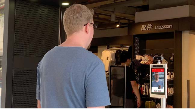 Déclenché par la reconnaissance faciale, l’utilisateur peut voir sa température en se tenant simplement à moins de 90 centimètres du ThermoPad.